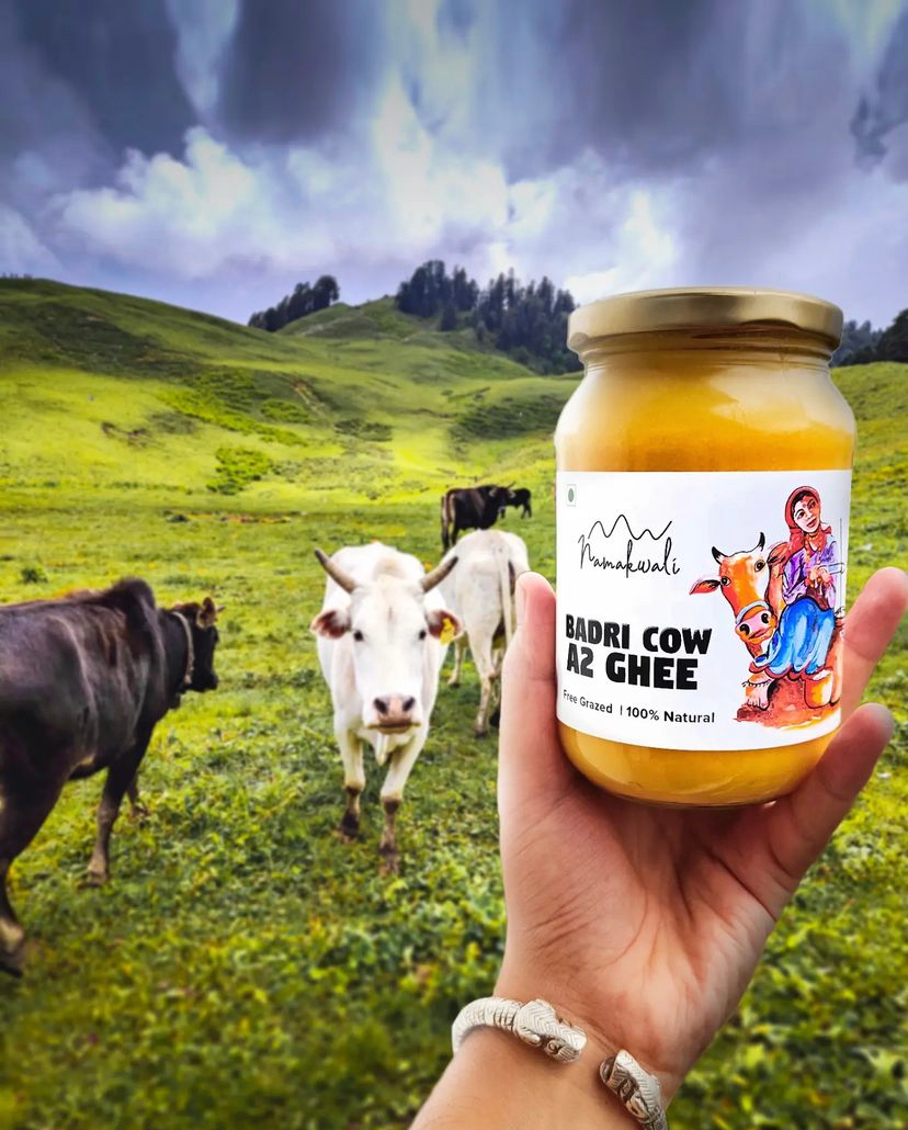 Badri Cow Ghee is made from the Badri cow's milk, which is a native cattle of the Himalayan region. These cows feed on fresh grass & herbs present in the hilly areas, which makes their milk and ghee highly nutritious. Badri cow's milk contains A2 Beta Casein.