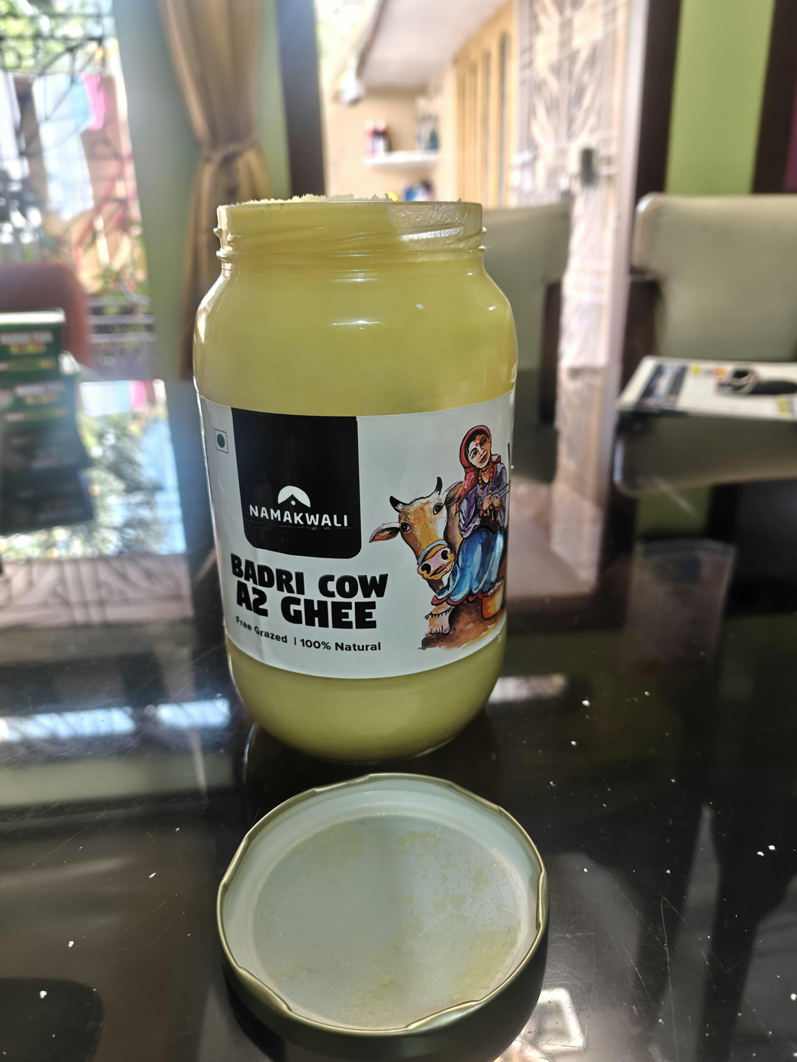 Badri Cow Ghee is made using the traditional bilona method i.e. fresh milk is turned into curd, churned into buttermilk, then separated into pure Makhan (butter) and melted to produce authentic A2 Ghee.