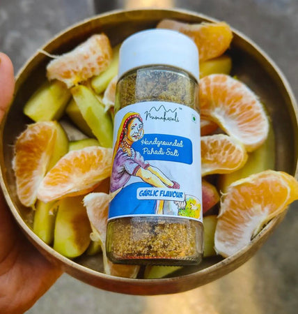 Elevate your culinary creations with Namakwali Garlic Flavoured Salt. A pahadi salt blend of Himalayan rock salt, infused with a vibrant mix of herbs and spices, crafted by talented women artisans from Uttarakhand. Perfect for everyone who loves to enhance their dishes. It's the secret ingredient that will transform ordinary meals into extraordinary experiences.